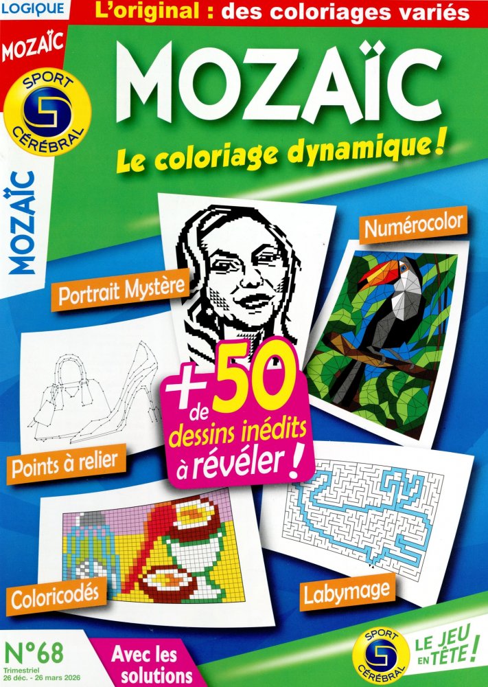 Par iciAvec Mozaïc de Sport Cérébral®, découvrez le coloriage dynamique et festif ! Vous allez conjuguer les plaisirs variés de relier les points, jouer aux labyrinthes, décoder et retracer des chemins logiques
